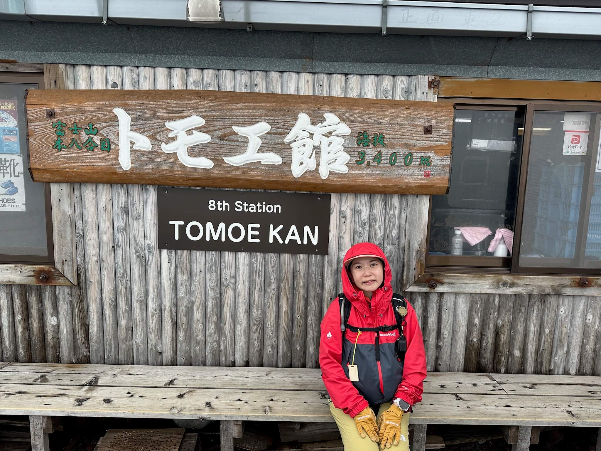 從上午走到下午也差不多累了,心裡就開始期待著「本八合目トモエ館」趕快出現,每個轉彎都在期待下一個小屋!終於,在下午三點左右,我們抵達了山小屋。開心地在門口拍下紀念照,還發現先抵達的五組登山客中,居然有三組都是台灣人,超巧的!跟其他台灣山友小聊了一下,我們就趕緊 Check-in 休息,整理裝備,等待五點的晚餐時間。