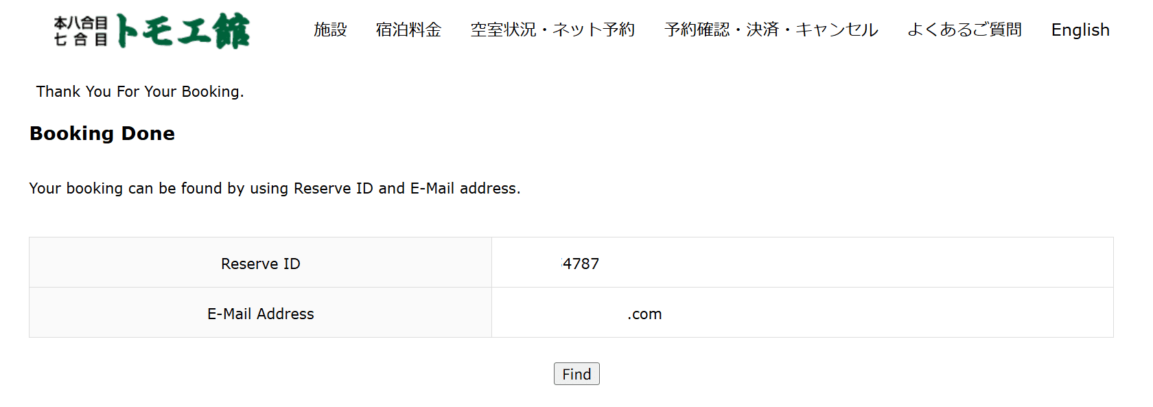 網站介面其實滿簡單的,從左到右分別是:設施介紹、住宿費用、空房狀況與預約、預約確認與付款、還有常見問題。雖然也有英文版,但介紹比較簡略,建議大家還是可以點進日文版,用翻譯軟體搭配圖片,會看得更清楚。